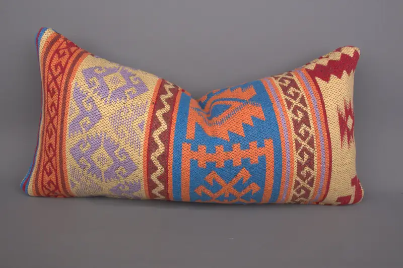 Blau & Orange besticktes Wurfkissen, geometrisches Vintage-Kissen