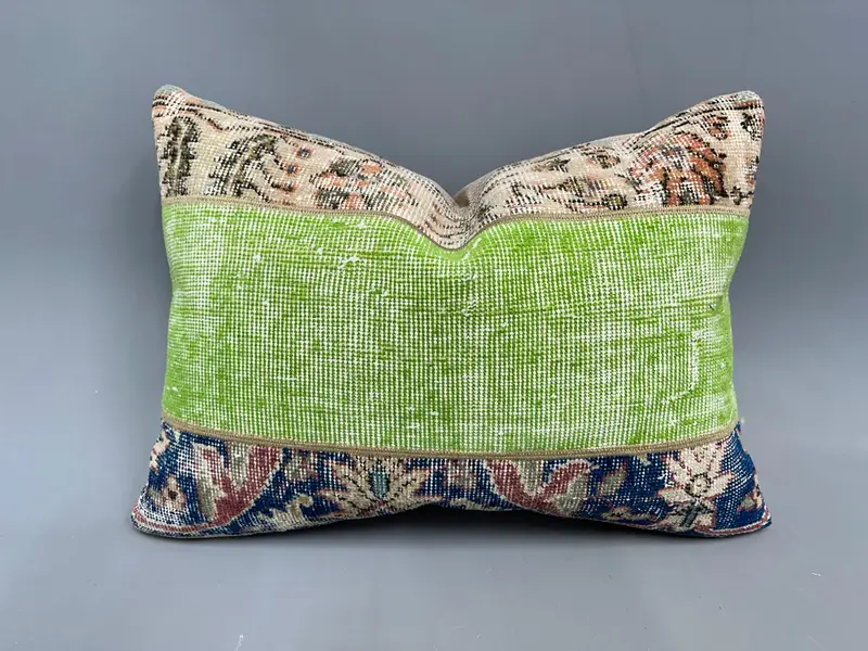 Handgefertigtes Patchwork-Wurfkissen in Grün und Bronze, 20 x 28 Zoll Vintage-Rechteckkissen