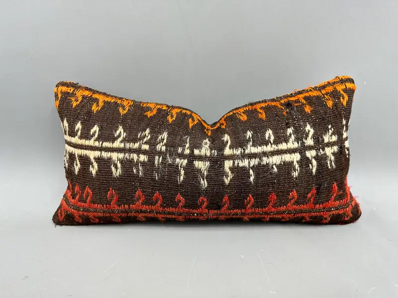 Rot & Orange besticktes Wurfkissen, handgemachtes Kelimkissen
