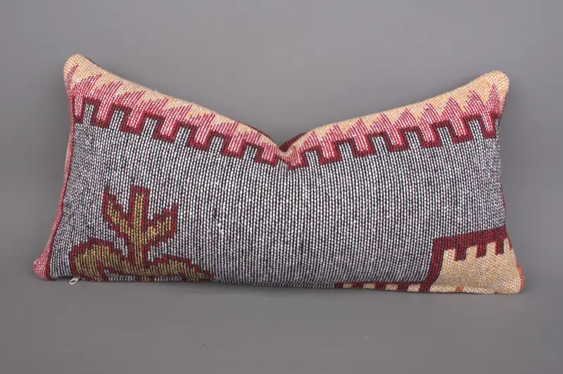 Handgewebtes Kelim-Wurfkissen, 12x24 besticktes Kissen