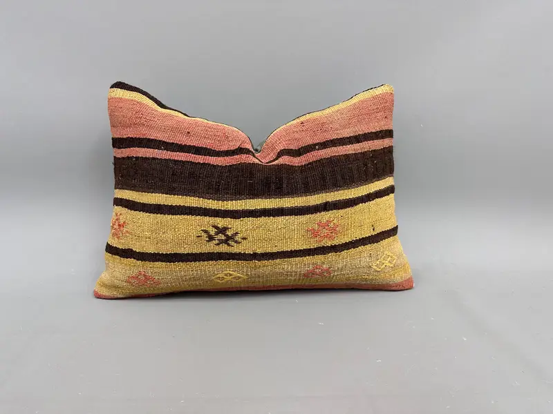 Geometrisches Kissen in Beige und Braun, Vintage besticktes Kissen