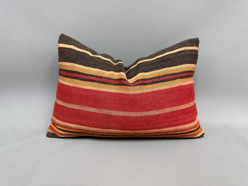 Rot-braun gestreiftes Kissen, 16x24 besticktes Wurfkissen