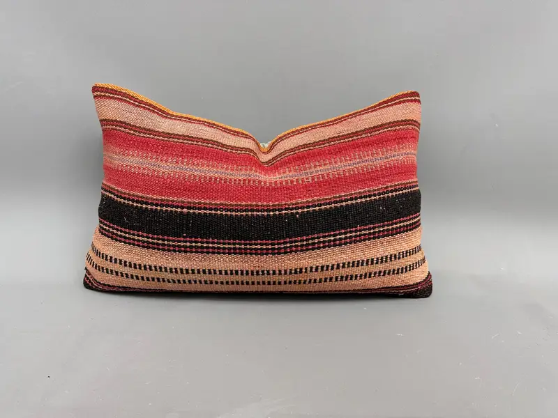 Handgewebtes türkisches Kelim-Wurfkissen, rot-braun gestreiftes Kissen
