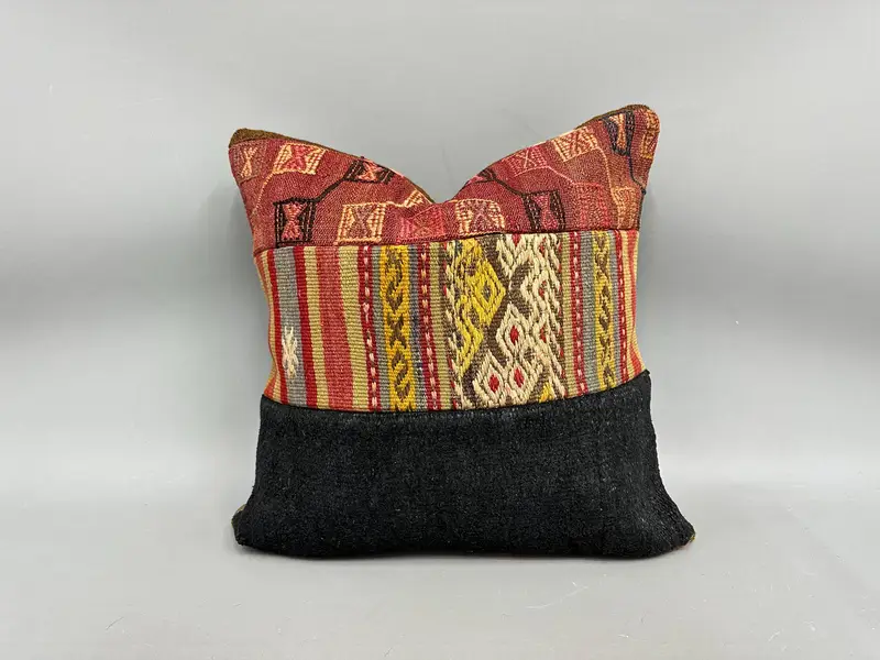Handgewebtes marokkanisches Kelimkissen, braunes und rotes Patchwork-Wurfkissen