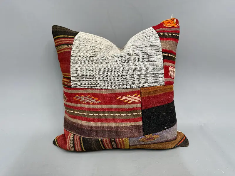Rot-weiß gestreiftes Kissen, Vintage besticktes Kissen