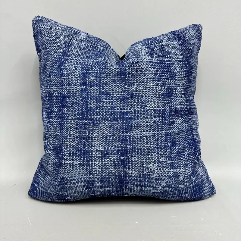 Blaues Kelim-Wurfkissen im Südwesten, besticktes Vintage-Kissen