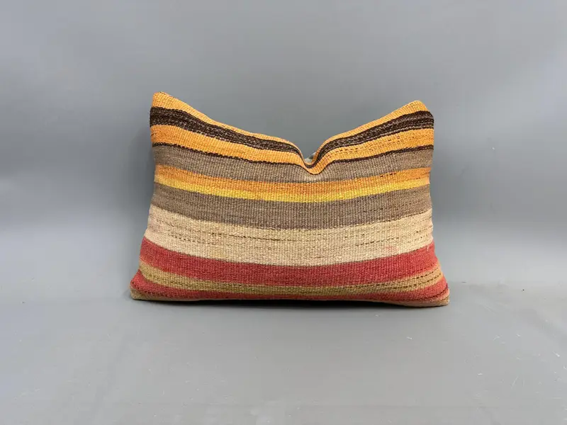 Handgefertigtes braun-grau gestreiftes Kissen, besticktes Wurfkissen