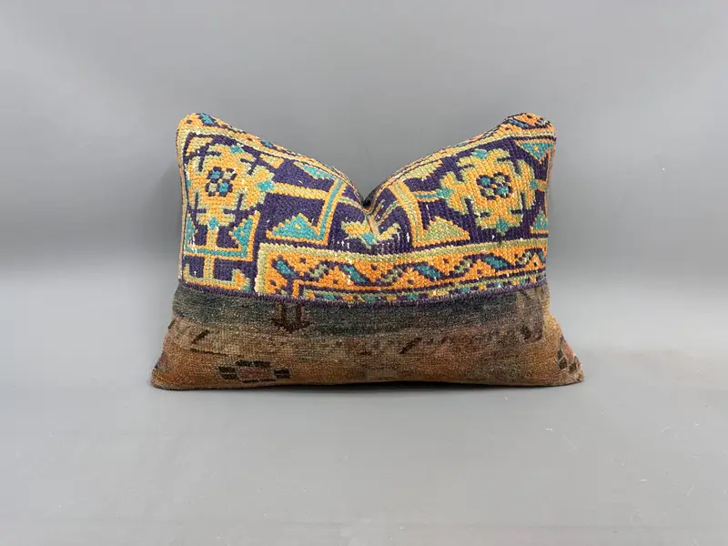 Blaues und orangefarbenes Patchwork-Wurfkissen, Vintage-gesticktes Kissen
