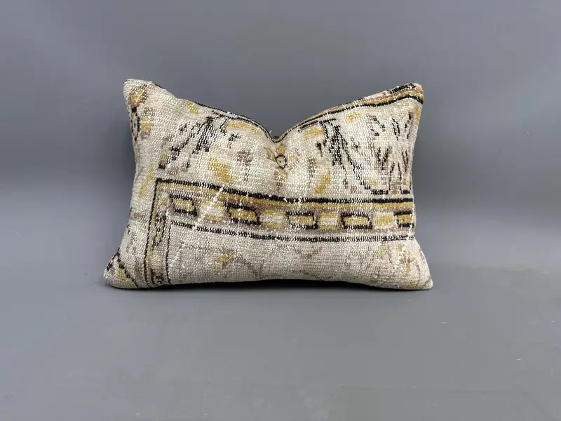 Grünes und braunes Leinen-Wurfkissen mit Blumenmuster, rechteckiges Vintage-Kissen