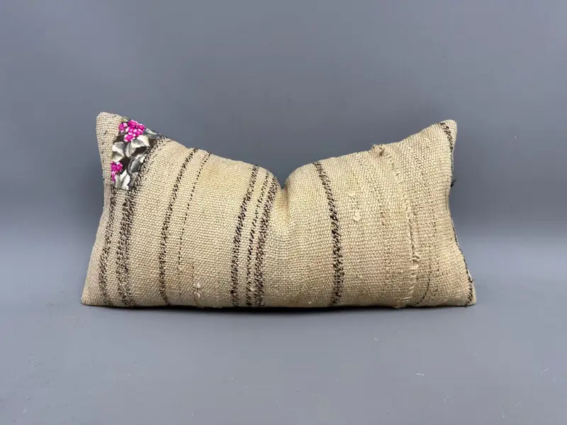Handgefertigtes Kelimkissen in Beige und Braun, 12x24 Zoll Wurfkissen