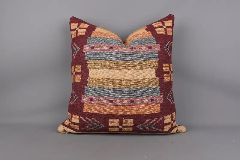 Geometrisches Wurfkissen in Rot und Orange, Vintage-Kelimkissen