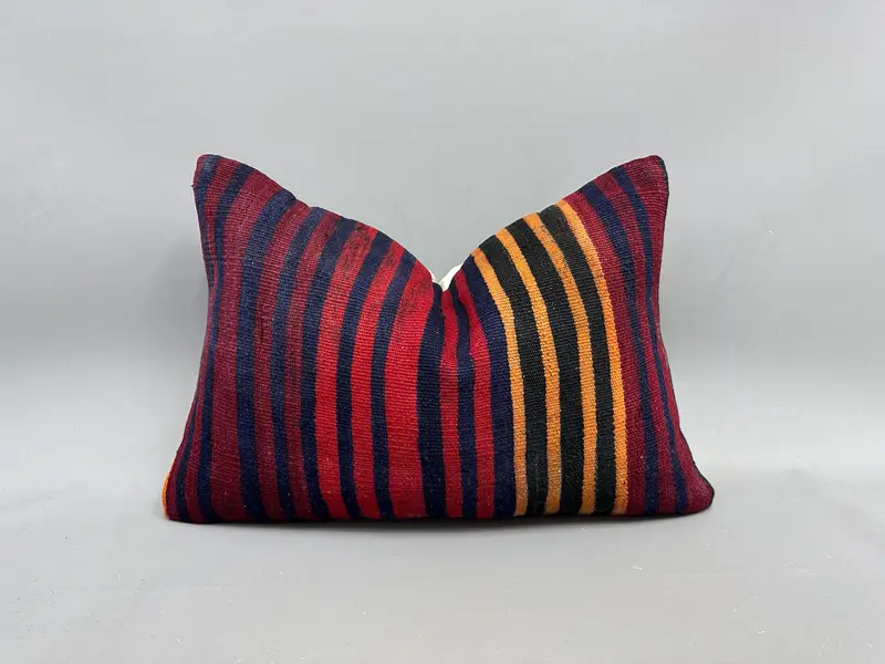 Rot & Orange gestreiftes Kissen, handgemachtes Vintage Leinenkissen