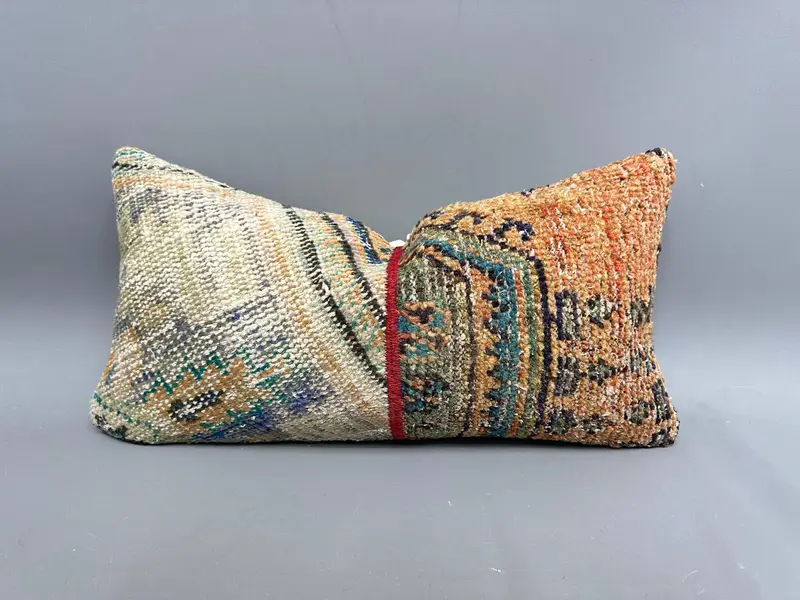 Orange & grünes Patchwork-Wurfkissen, Vintage besticktes Kissen