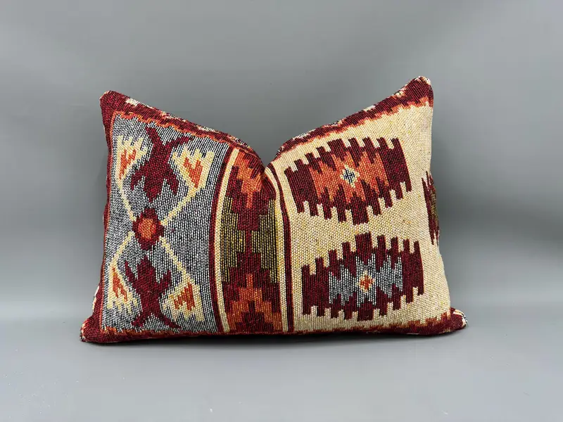 Rot & Beige besticktes Wurfkissen, 20x28 Zoll Vintage Kissen