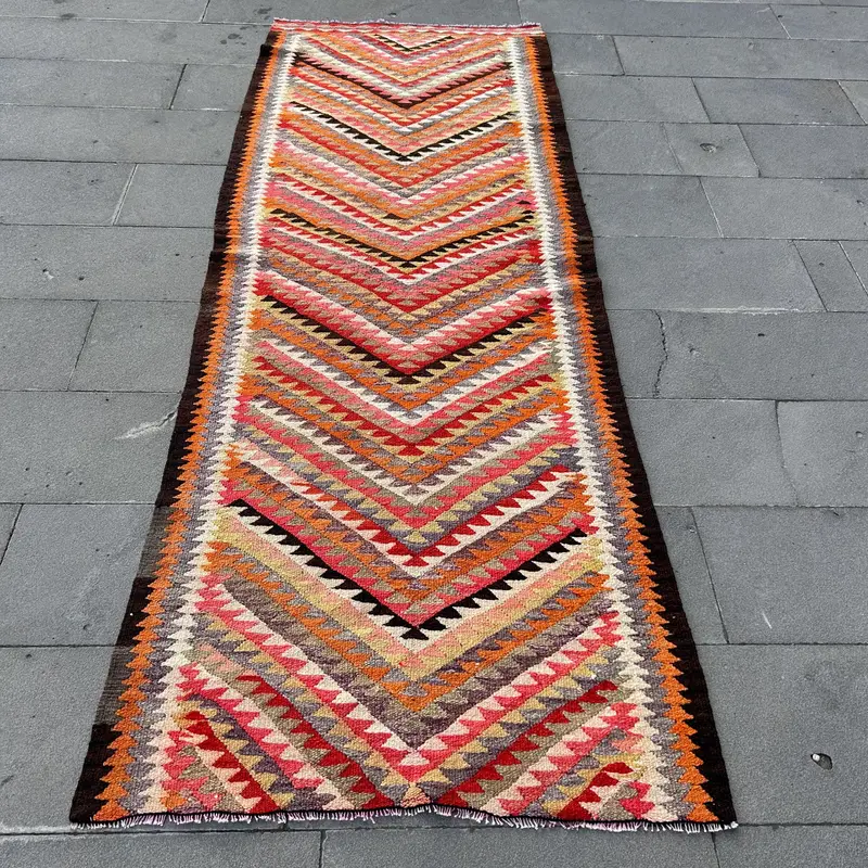 Eleganter beige-grüner Teppich, 3,2 x 9 Fuß großes persisches Muster