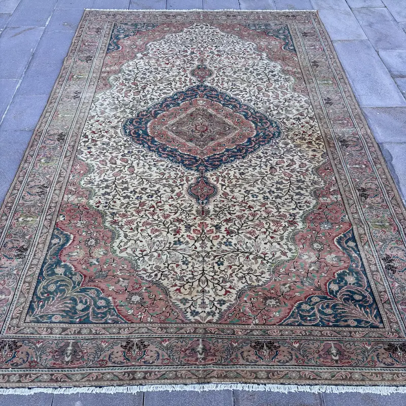 Beigefarbener Ombré-Teppich, 6,3 x 9,5 Fuß, eleganter Komfort