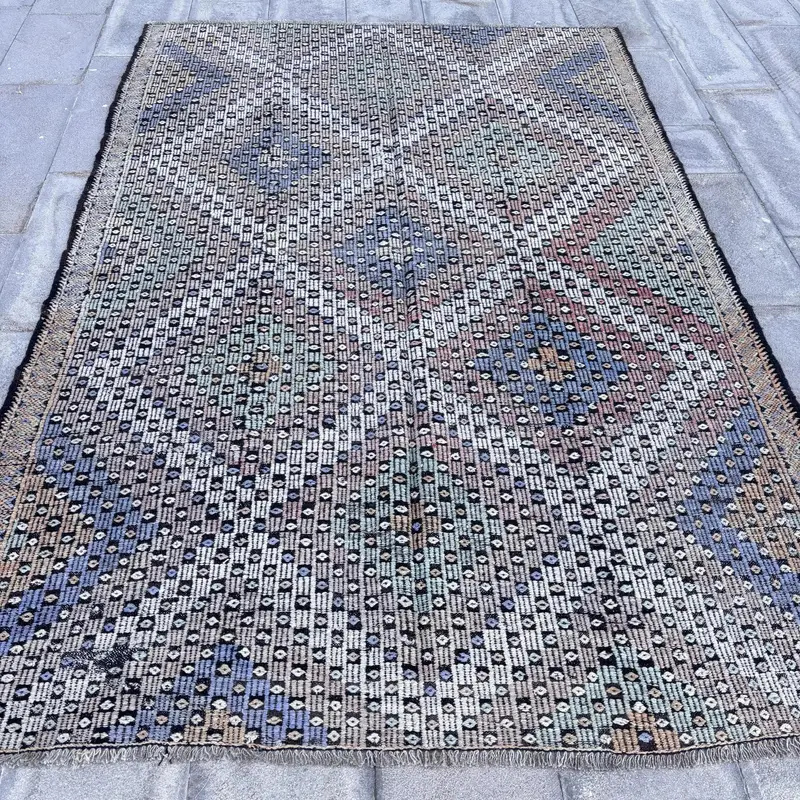 Lila-grüner Karoteppich, 5,8 x 8,8 Fuß, elegantes Dekor