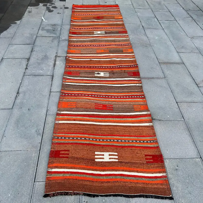 Leuchtender orangefarbener Teppich, 2,7 x 10,5 Fuß großes Blumen- und Paisley-Design