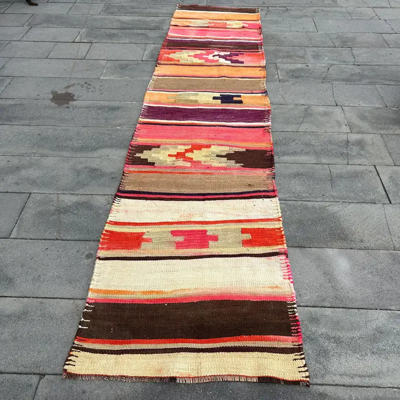 Eleganter Teppich in Beige und Rosa, 2,7 x 11,8 Fuß großes persisches Muster
