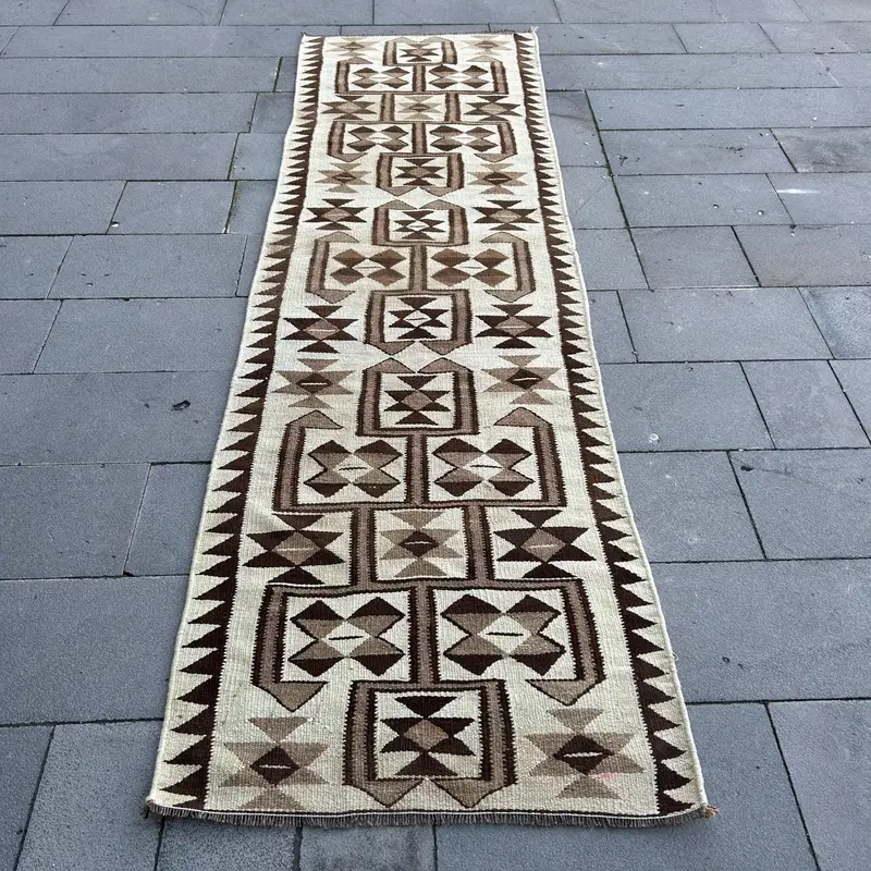 Eleganter beigefarbener Teppich, 3 x 10,2 Fuß großes persisches Muster