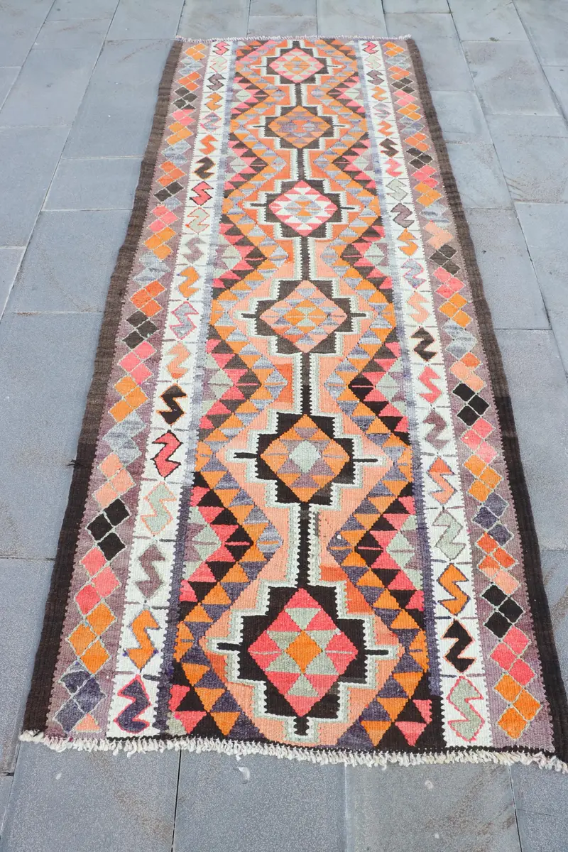 Teppich in Orange und Schwarz, 3,4 x 8,9 Fuß, botanisches Design