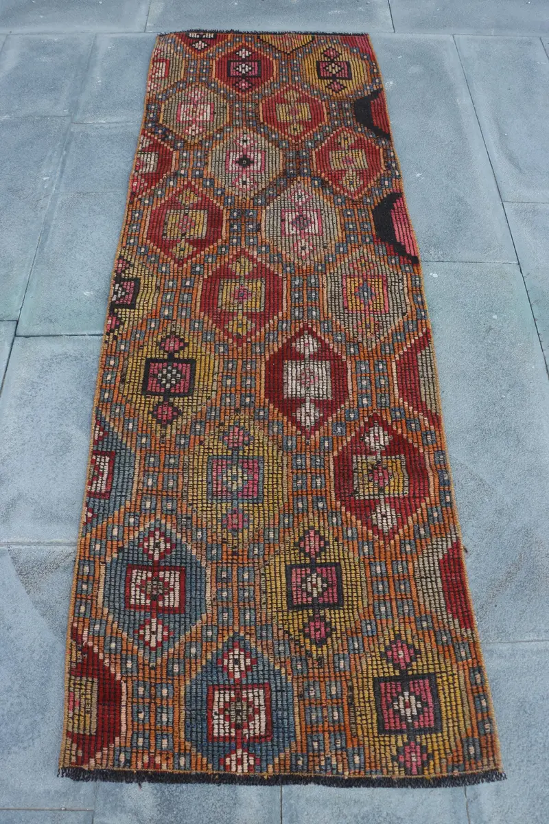 Orange-rot gestreifter Teppich, 2,4 x 7,1 Fuß, lebendiges Dekor