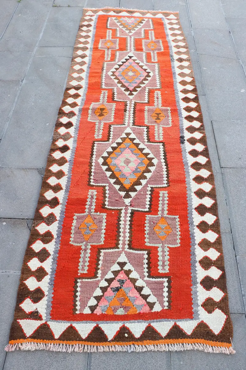 Rot-beige gepunkteter Teppich, 2,7 x 8,4 Fuß, schickes Dekor