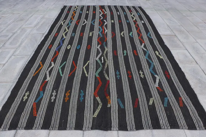 6,8x12 Fuß schwarzer Teppich mit rotem Rand, moderne Eleganz