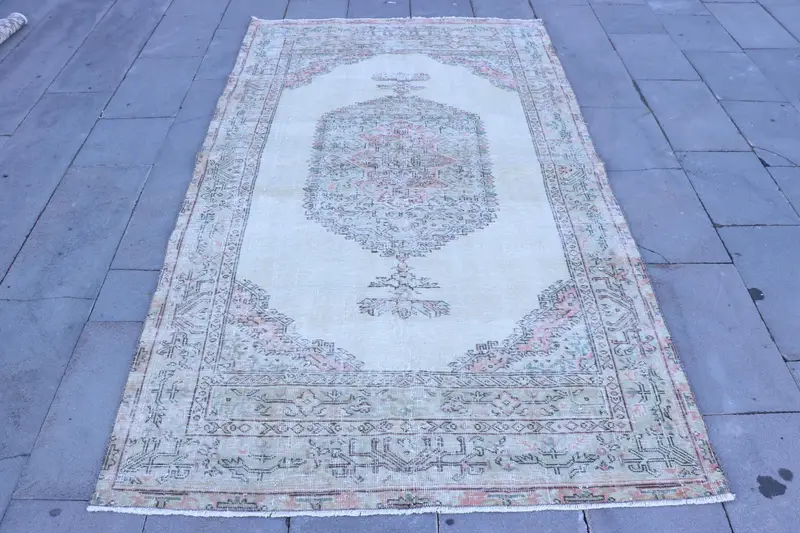 Eleganter beige-grüner Teppich, 4,5 x 7,8 Fuß großes botanisches Design