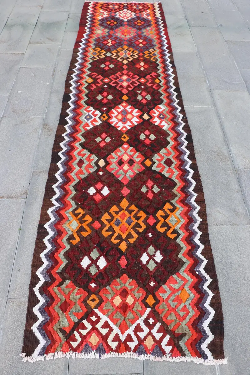 Lilafarbener Orientteppich, 2,9 x 10,9 Fuß mit roten Akzenten