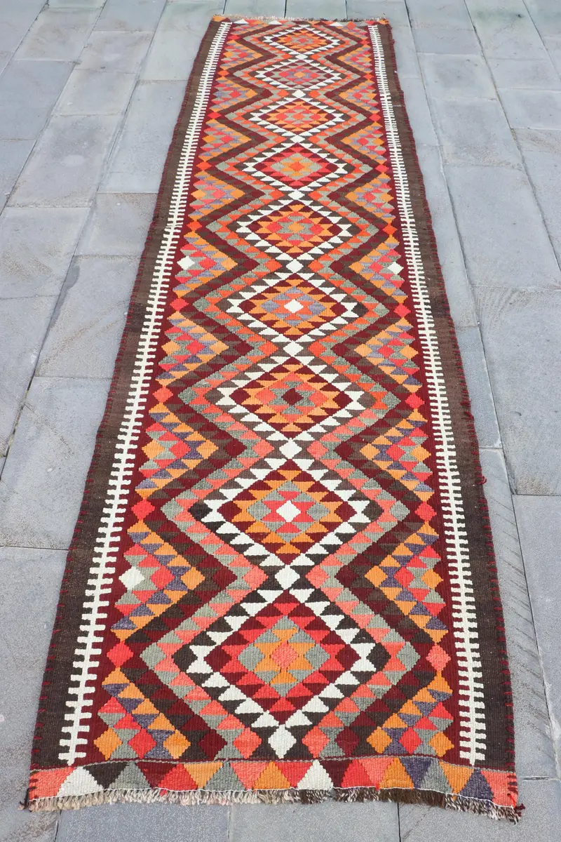 Orangefarbener Ikat-Teppich, 3 x 10,7 Fuß, lebendiges Dekor