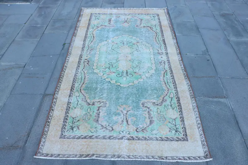 3,7 x 6,7 Fuß großer grüner Ombré-Teppich, eleganter Beige-Akzent