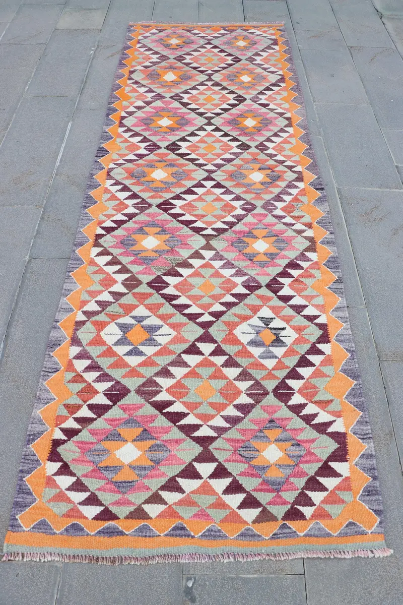 Lila Teppich im Südwesten, 9,1 x 2,9 m, lebendiges Dekor