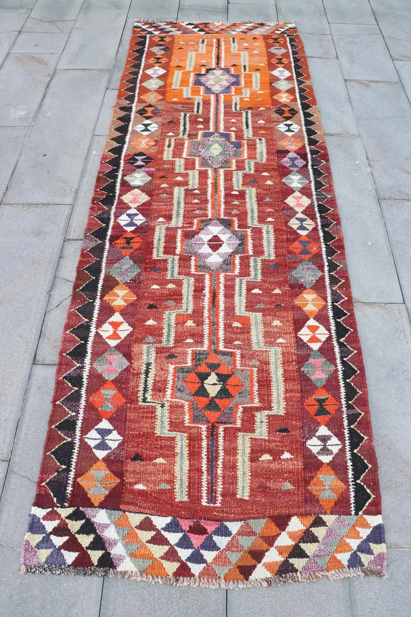 Lila, orangefarbener Blumenteppich, 3 x 9,4 Fuß, schickes Dekor