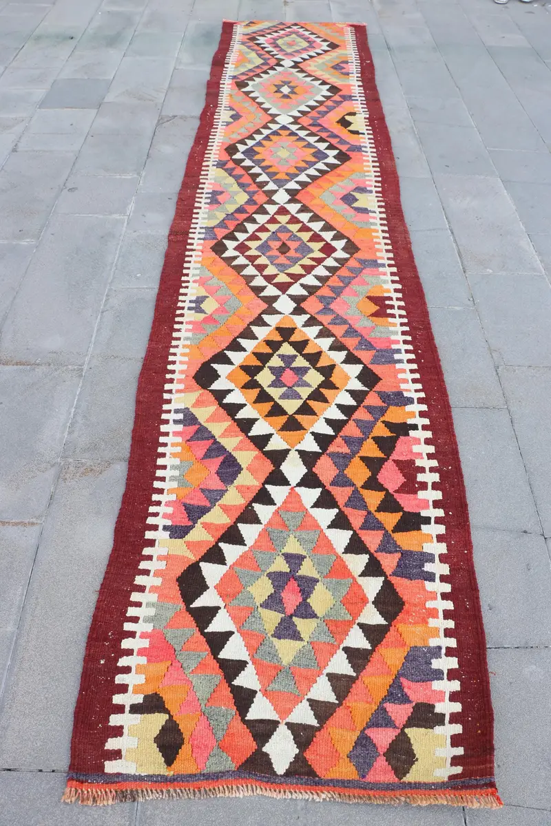 Teppich in Orange und Lila, 2,7 x 13,9 Fuß großes Randdesign