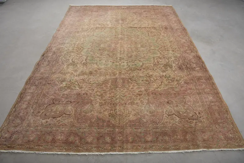 Rosa-grüner Teppich, 6,3 x 9,4 Fuß großes botanisches Design