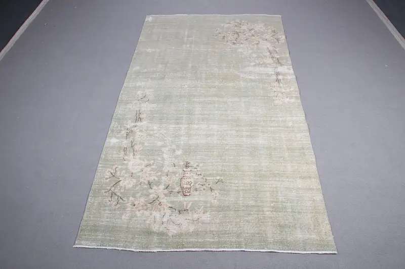 Eleganter beige-grüner Teppich, 4,8 x 9 Fuß abstraktes Design
