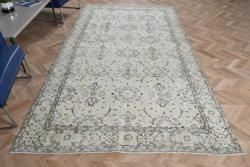 Eleganter beige Teppich, 5,6 x 9,9 Fuß, abstraktes Design