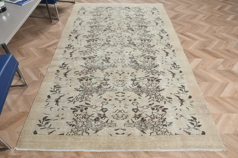 Eleganter beiger Teppich, 5,2 x 8,6 Fuß, geometrisches Blumenmuster