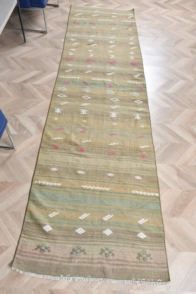 Eleganter grüner Blumenteppich, 2,7 x 10,1 Fuß, schickes Dekor