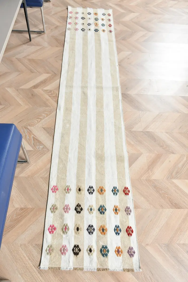 Beige-brauner Patchwork-Teppich, 1,7 x 8,6 Fuß, elegantes Dekor