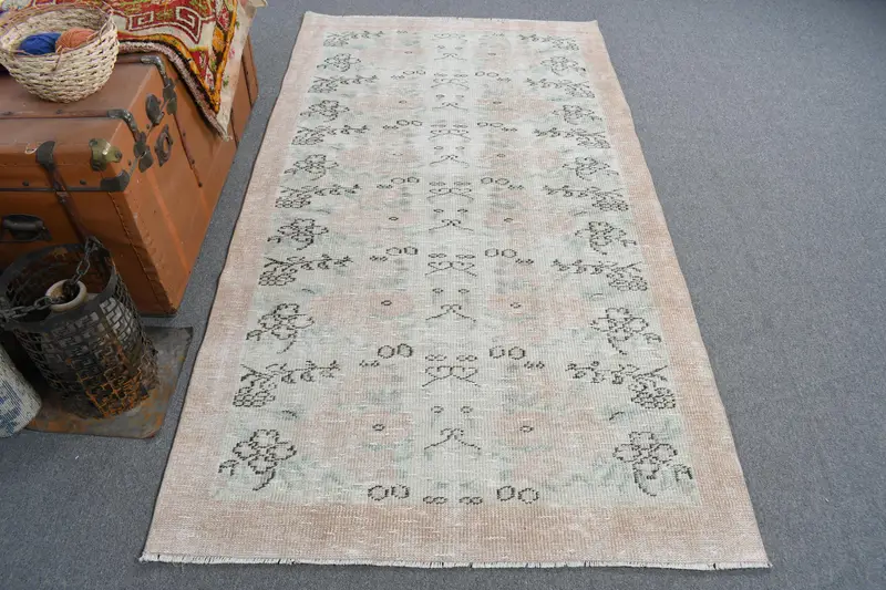 Grüner und orangefarbener Teppich, 3,8 x 6,8 Fuß, floral und geometrisch
