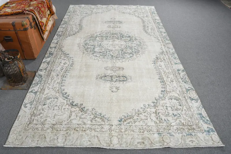 Eleganter beigefarbener Orientteppich, 5,7x9,9 Fuß mit grünen Akzenten