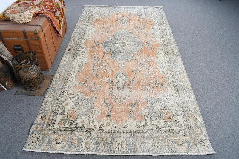 Leuchtender orangefarbener Teppich, 4,6 x 8,9 Fuß mit grünen Akzenten