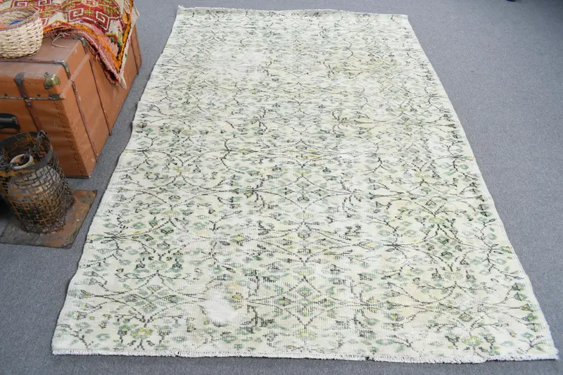 Eleganter grüner Südwestteppich, 5,2 x 8,1 Fuß, schickes Dekor
