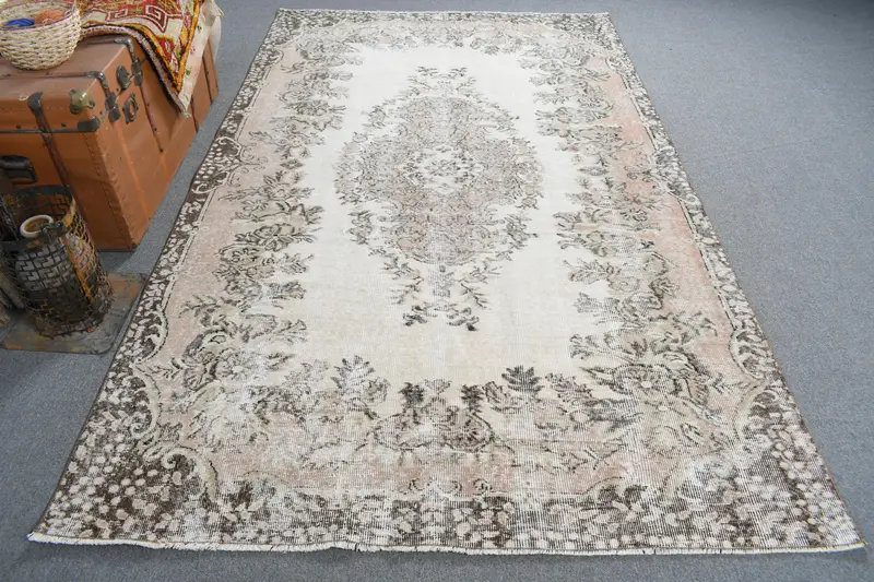 Orange-brauner Teppich, 5,4 x 8,9 Fuß großes Randdesign