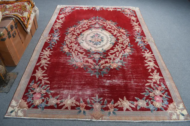 Rot-blauer Patchwork-Teppich, 5,8 x 8,6 Fuß, elegantes Dekor
