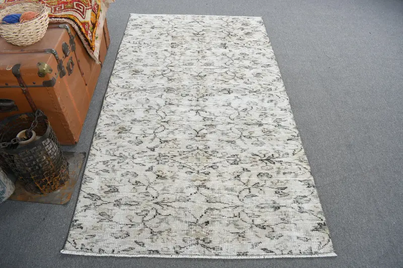 Eleganter beigefarbener Orientteppich, 3,6 x 6,4 Fuß mit grünen Akzenten