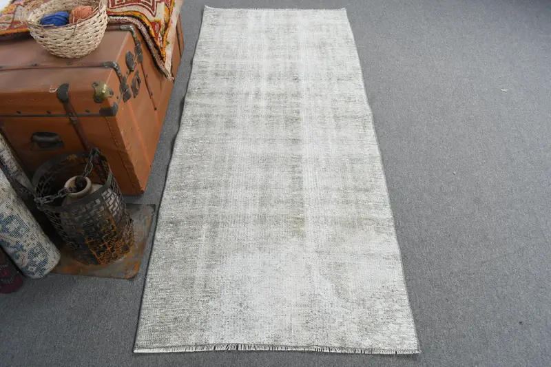Grüner, beigefarbener Teppich mit Rand, 2,7 x 6,2 Fuß, schickes Dekor