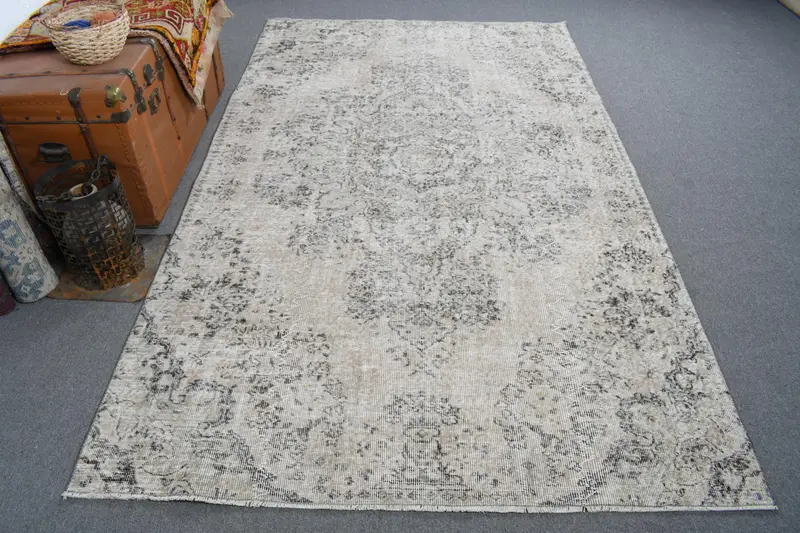 Eleganter beige-blauer Teppich, 5,2 x 8,7 Fuß, floral und geometrisch